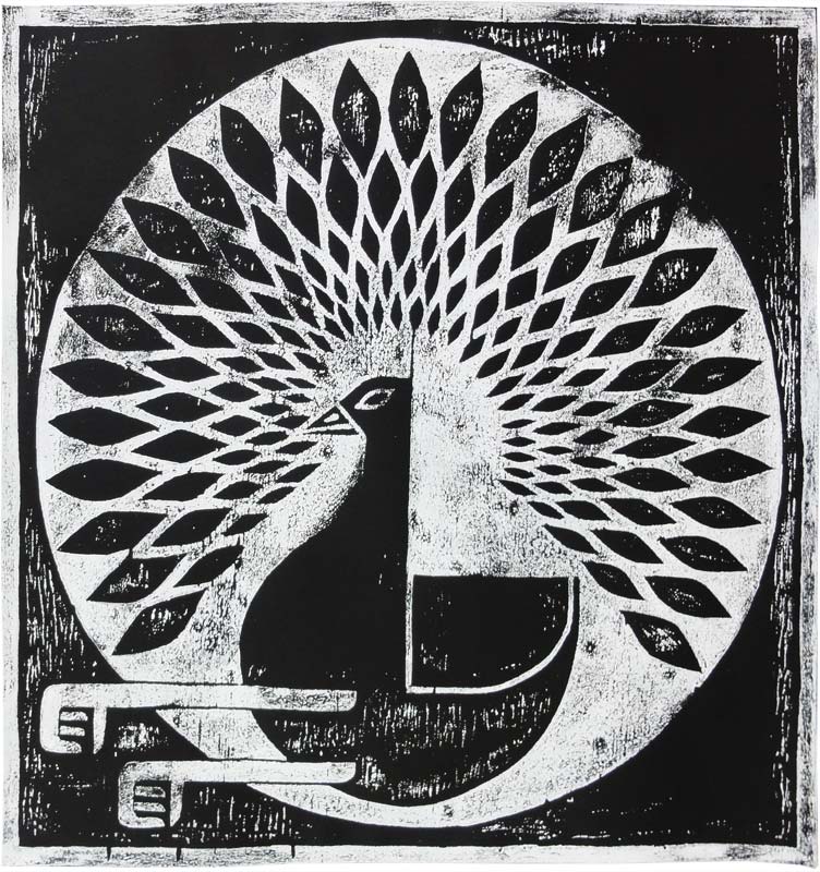 Holzschnitt, Acryl auf Papier
