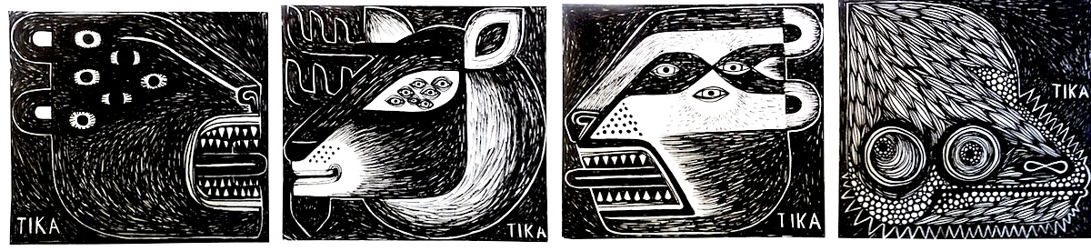 TIKA beschäftigt sich mit dem schnellen globalisierungsbedingten Wandel des Urbanen Raumes und der somit beinahe vergessenen lokalen Geschichte. Die grossflächigen Wandbilder sowie die Arbeiten aus dem Atelier sind inhaltlich spontane Interaktionen auf die Gegebenheiten und Erlebnisse vor Ort. Sie sind in ganz Europa aber auch in Ländern wie Brasilien, Gambia, Ägypten, USA oder Süd Afrika entstanden und ausgestellt worden. In ihren Werken katalysiert TIKA die ortsspezifischen Mythen und Traditionen sowie Alltägliches in grafisch aufgebaute Bilder, schichtet Spray und Acryl über den Schmutz der Zeit um dann auf alte Farbschichten zu kratzen oder brennt und schnitzt hellere Holztöne in gefundene Bretter um somit ein Stück Vergangenheit freizulegen.